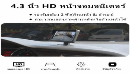 กล้องติดรถยนต์ จอแสดงผล LCD ขนาด 4.3 นิ้ว